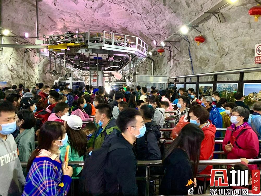 但感覺節(jié)日期間這條索道仍不敷應用,游客排隊等候竟長達3小時以上。華山索道一覽。李仁奇攝。