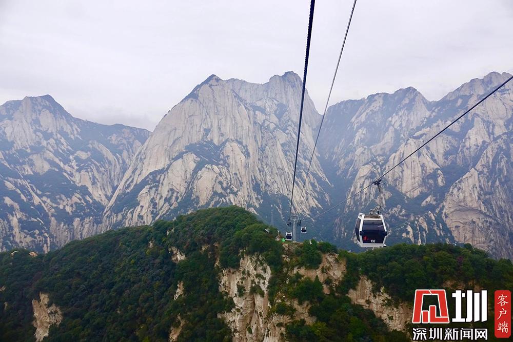 該索道2013年投入運營,打破了“自古華山一條路”的狀況,形成了不需走回頭路的新游線。華山索道一覽。李仁奇攝。