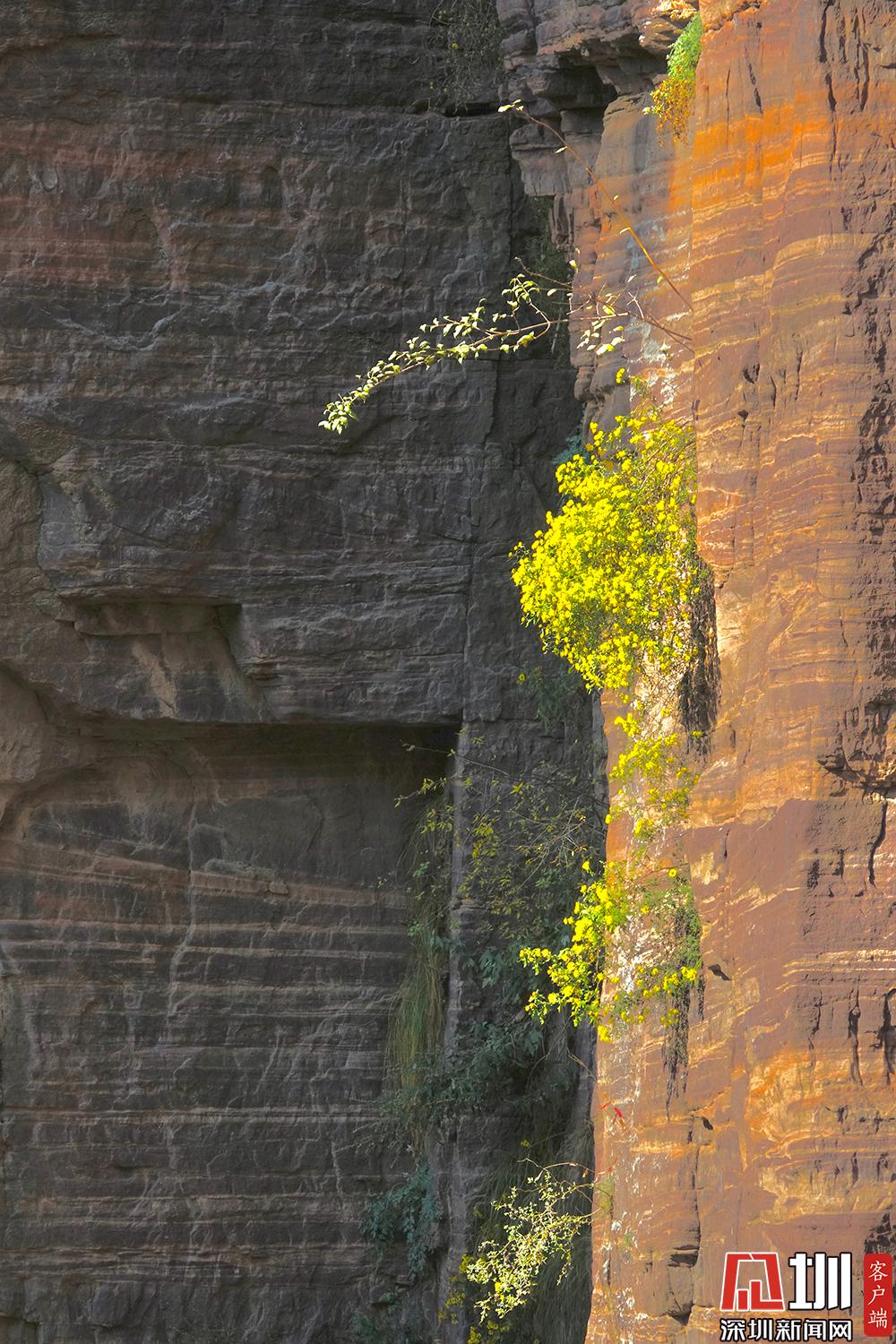 嫩綠的樹枝從絕壁之中生長開來。李仁奇攝