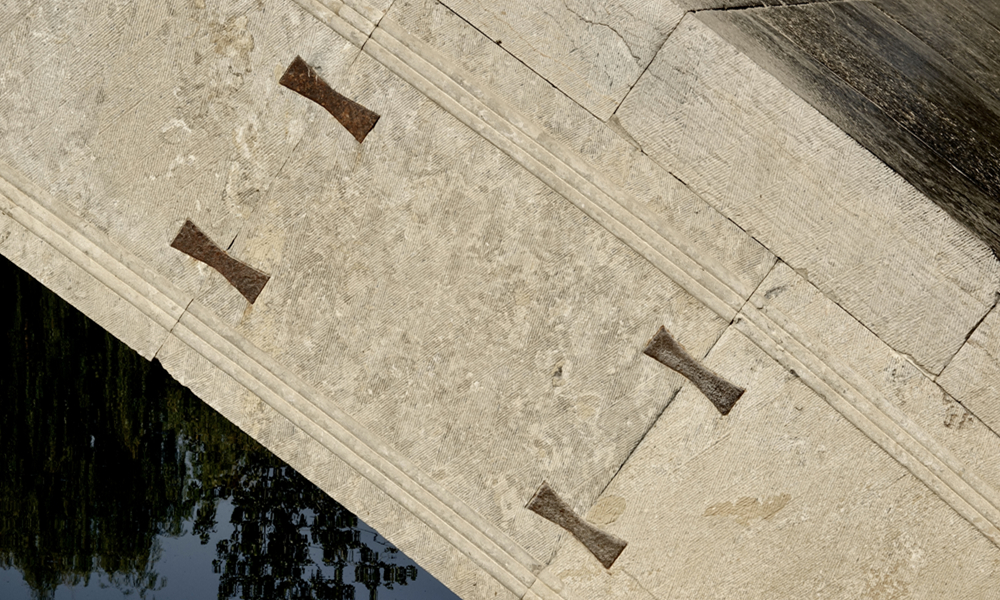 此次修繕在全面測量的基礎(chǔ)上采用原來的護(hù)拱石、鉤石、腰鐵、鐵拉桿和收分五種做法,還在橋面上下加設(shè)了二粘三油防水層(二層防水亞麻布和三層瀝青),防止漏水腐蝕現(xiàn)象發(fā)生。橋面的所有欄板、望術(shù)按早期式樣新制。李仁奇 攝