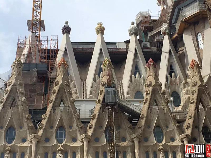 高迪73歲去世時,教堂僅完工了不到四分之一。圣家堂的建設(shè)進展緩慢,僅靠個人捐贈和門票收入維系,中間又受西班牙內(nèi)戰(zhàn)干擾,在二十世紀五十年代建造時斷時續(xù)。圖為圣家族大教堂。李仁奇 攝