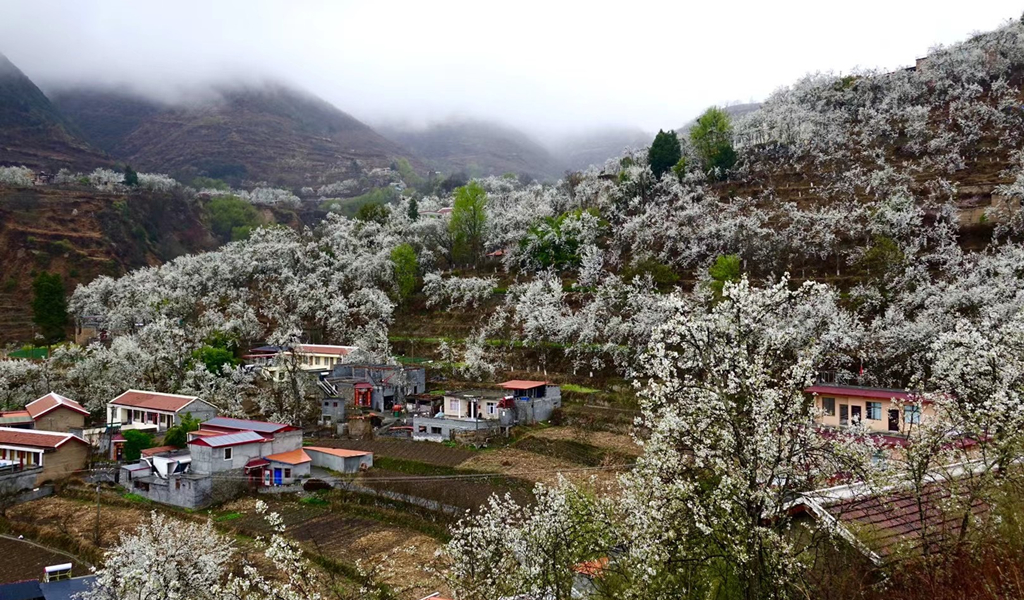 每年三到四月,金川縣的上百萬株梨樹在春日照耀下盛開白花,萬畝梨海、百里吐蕊。李仁奇 攝