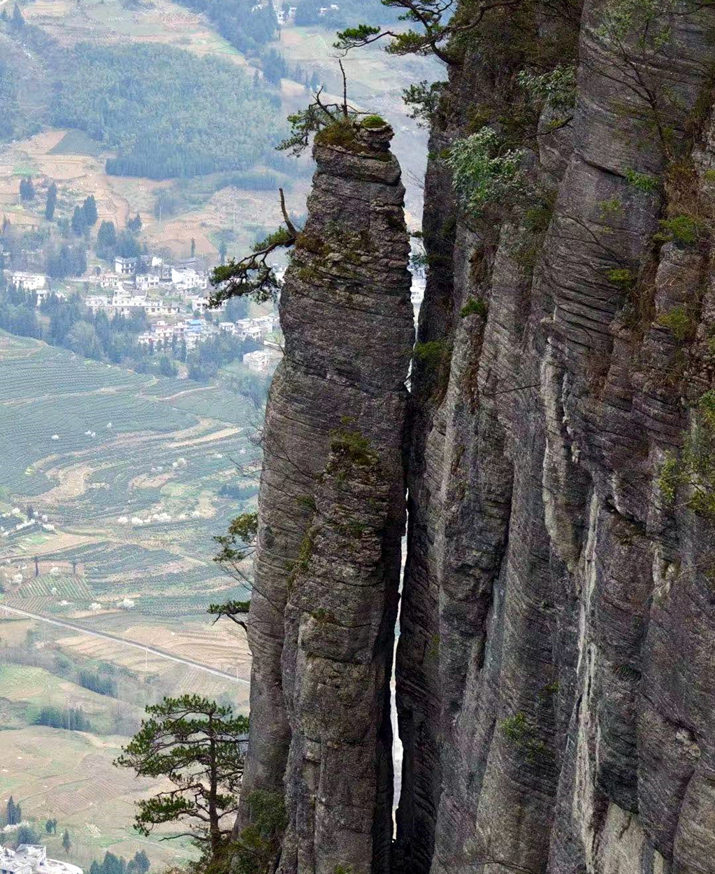 生長在山崖邊的松樹,沿壁而生,枝葉向外微微傾斜。李仁奇 攝