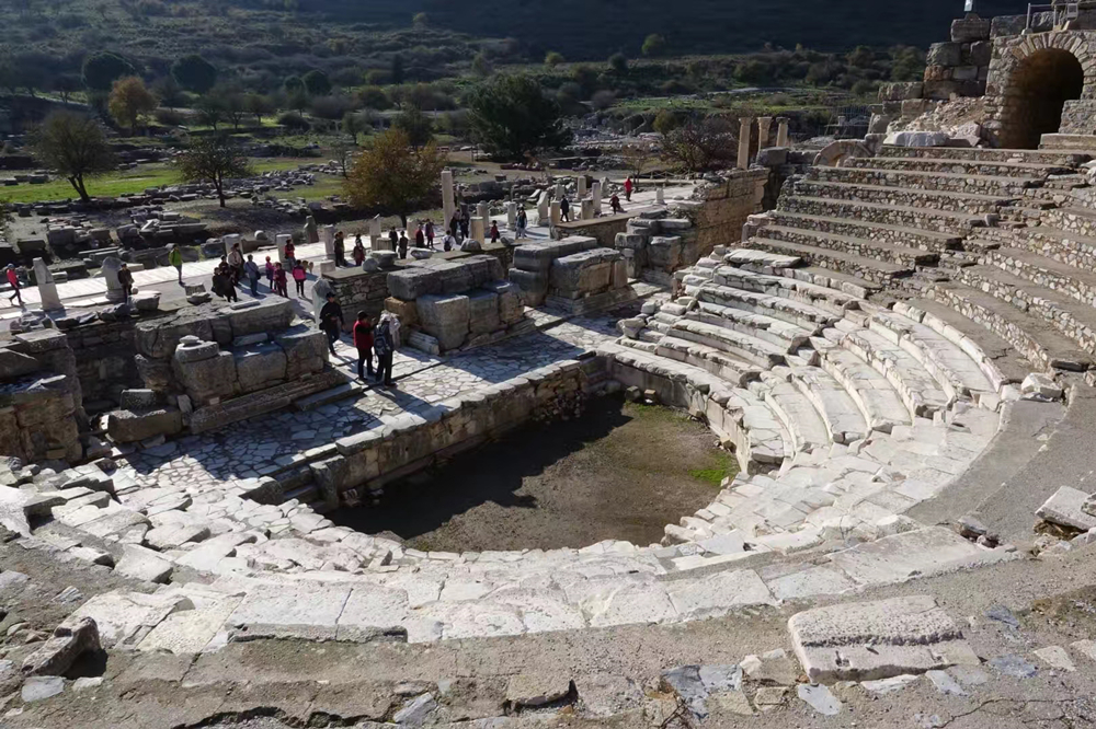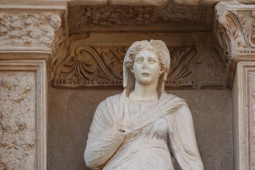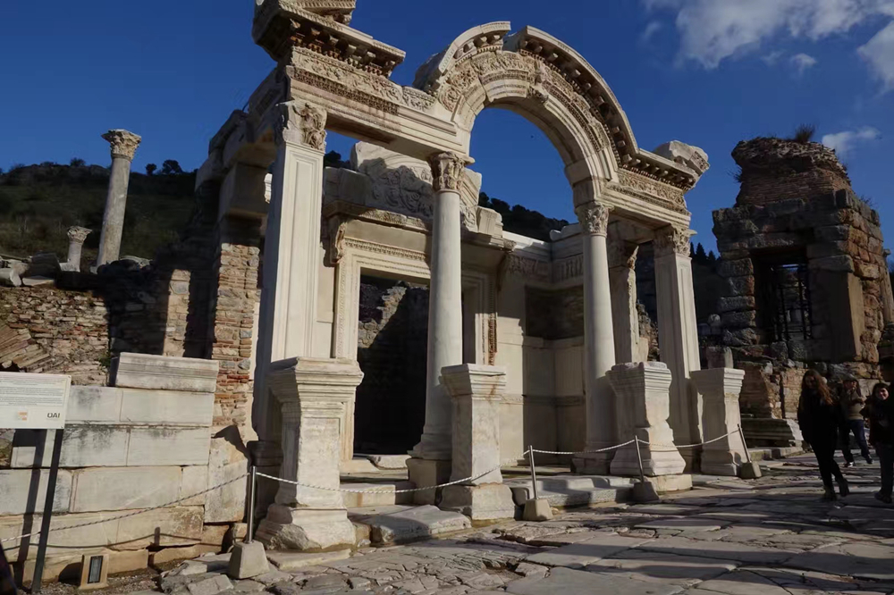在以弗所古城遺址可以看到用大理石修建的街道、商店、市集、圖書館、柱廊大街、哈德良神殿、劇場、浴場、妓院等遺跡。走進古城猶如穿過時光隧道,可以遙想2900多年前這座城市的繁盛情景。李仁奇 攝