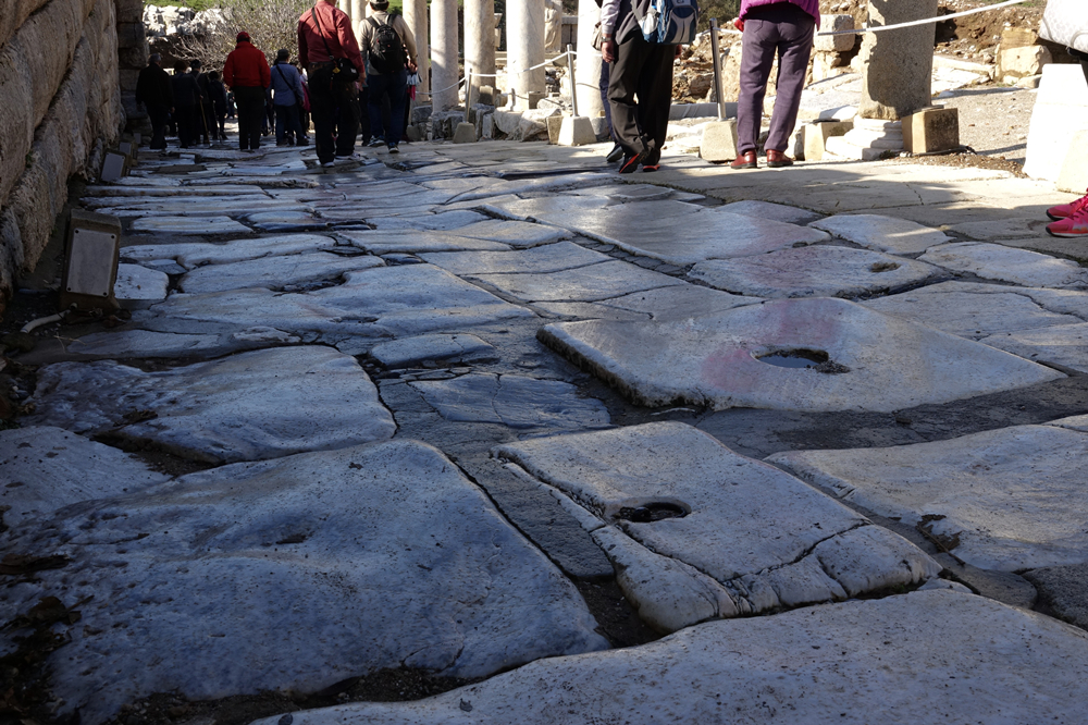 公元前334年,亞歷山大大帝把以弗所納入希臘帝國的版圖。在它的全盛時期,水管和污水管道都裝置在大理石石板的下面,50盞街燈掛在廊柱上照明,這應該是世界上最古老的街燈。兩邊有很多商鋪,至今在地面上可以看到被馬車壓過的車輪印記。它以阿爾忒彌斯神廟(女神狄安娜的首要神龕)、圖書館和戲院著稱。李仁奇 攝