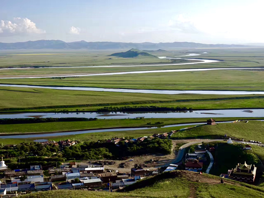 山下藏傳佛教格魯派的索克藏寺,有著藏族獨特的建筑風格,精妙的唐卡繪畫藝術;金燦燦的大殿給草原帶來神圣之感,河岸邊的經(jīng)幡又給美麗的九曲黃河第一灣增添了幾分莊嚴。李仁奇 攝