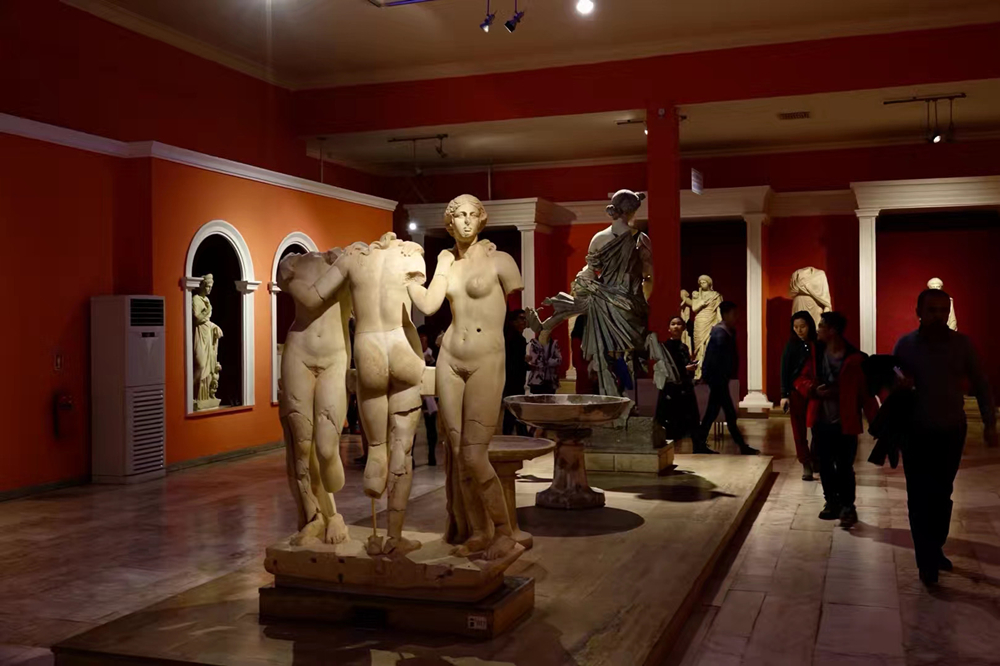大量公元2—3世紀的人體雕塑令人目不暇接,這個時期也是該地區(qū)歷史發(fā)展中最為繁盛的階段。館內(nèi)陳列著眾多古希臘古羅馬眾神的雕像,號稱“萬神殿”。這些雕像是從公元8世紀的古墓里面發(fā)掘出來的,包括眾神之神宙斯、天后赫拉、智慧女神雅典娜、愛情與美麗女神阿芙羅狄忒、太陽神阿波羅、大力神赫拉克勒斯等。李仁奇 攝