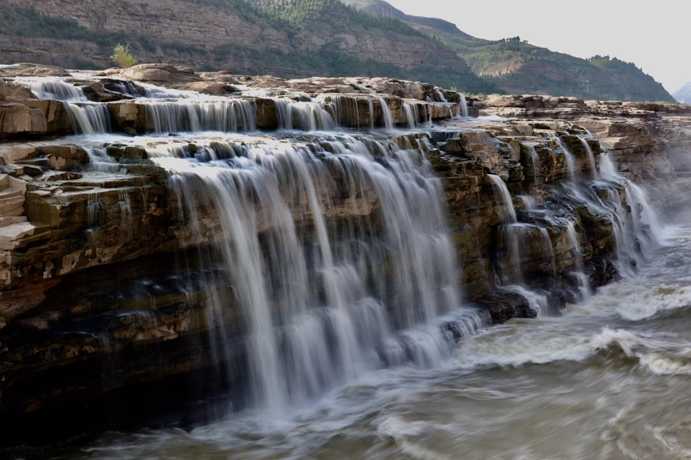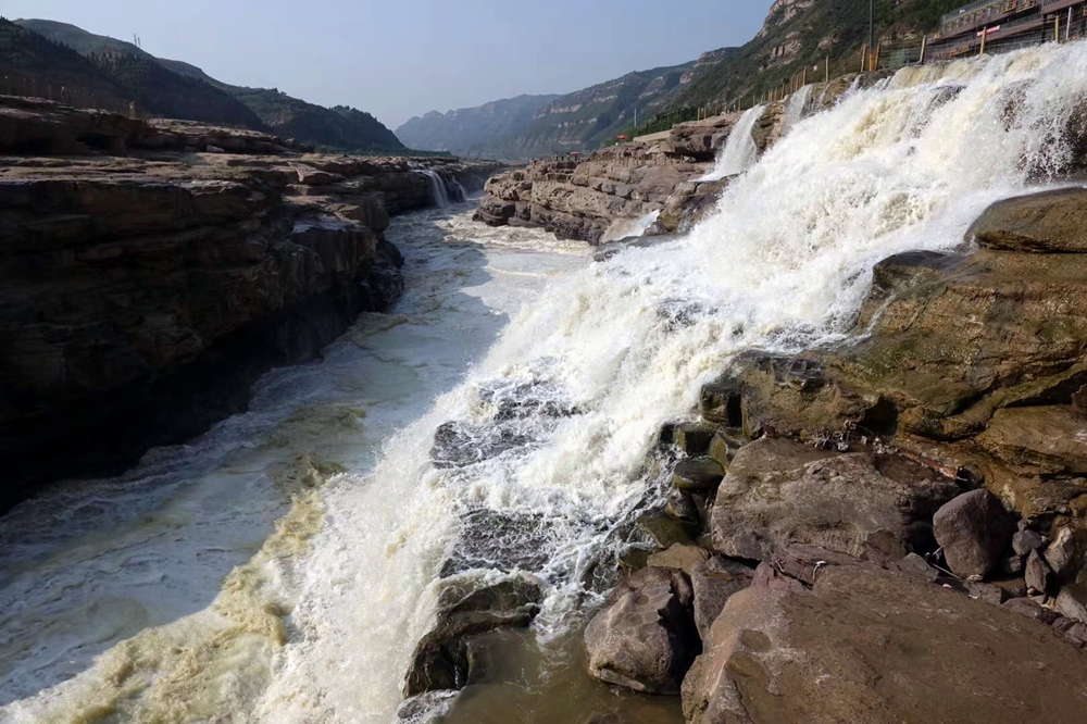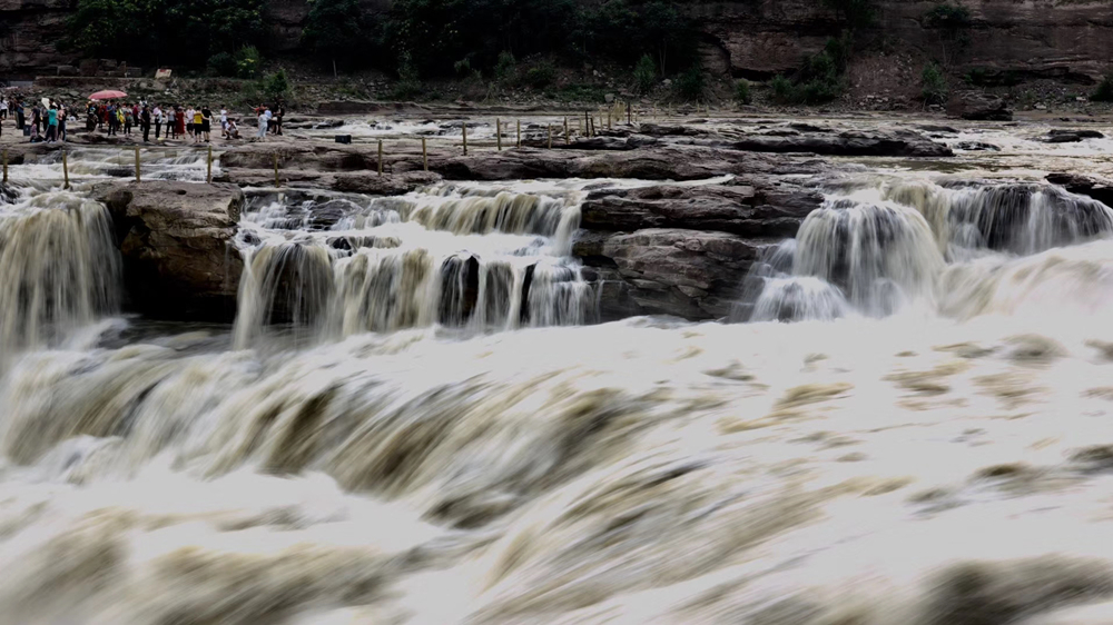 瀑布上游黃河水面寬300米,在不到500米長的距離內(nèi),被壓縮到20-30米的寬度。1000立方米/秒的河水,從20多米高的陡崖上傾注而下,形成”千里黃河一壺收”的氣概。這也是第四套人民幣50元紙幣背面的取景地。李仁奇 攝