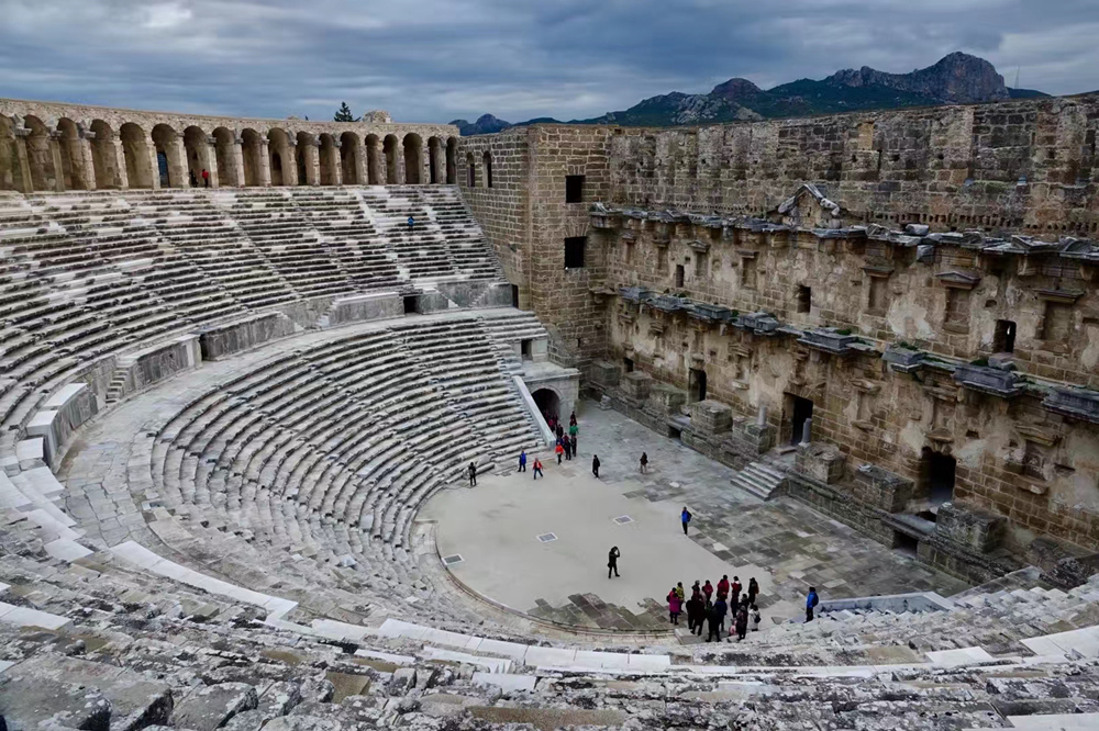 劇場有可容納7000人的扇形石階觀眾席,直徑達(dá)96米,整齊規(guī)則的排列。李仁奇 攝