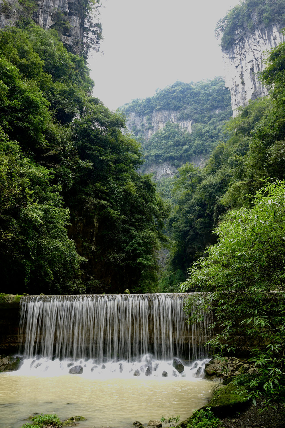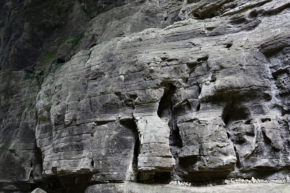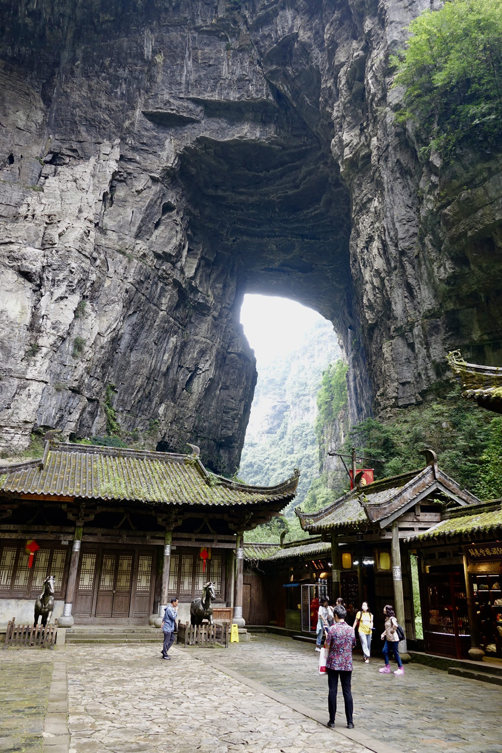 黑龍橋為羊水河峽谷上位置最下游的天生橋,因其拱洞幽深暗黑,似有一條黑龍蜿蜒于洞頂而得名。橋厚107m,拱孔跨度16-49m,橋面寬達193m,為三橋中寬度最大者。李仁奇 攝