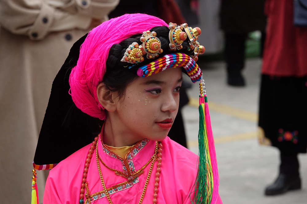 丹巴嘉絨藏族至今還完整保留著歷史悠久的女子成人禮習俗,成人禮在藏語中稱為“幾薩”,是“穿成年新裝”的意思。當?shù)貪h語又叫“戴角角”。李仁奇 攝
