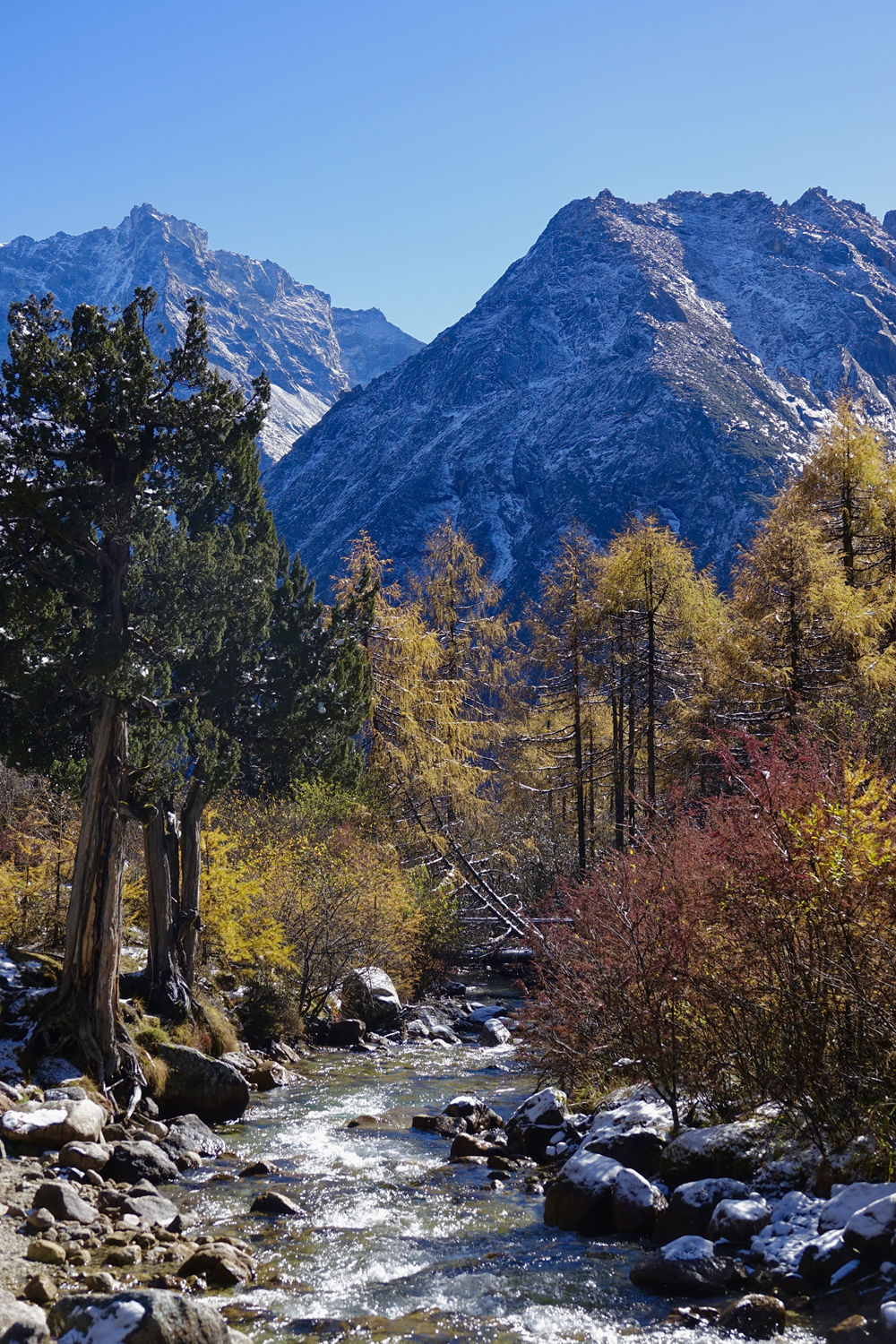 從雪山上流淌下來的小溪,在雪山和藍(lán)天的映襯下,分外漂亮。李仁奇 攝