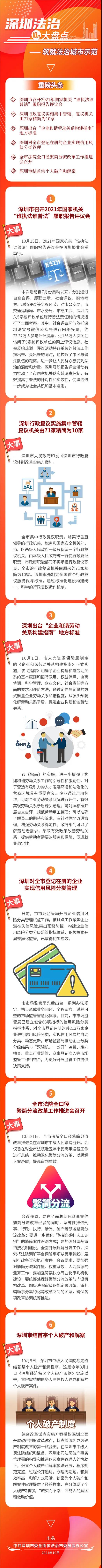 深圳是一座務(wù)實尚法的城市。從特區(qū)誕生伊始,法治始終與深圳改革發(fā)展同頻共振,并逐步成為深圳顯著的城市特質(zhì)之一。進入“雙區(qū)”驅(qū)動、“雙區(qū)”疊加的“黃金發(fā)展期”,深圳正肩負建設(shè)“法治中國示范城市”的新使命,在法治大道上奮力奔跑,以法治之力為人民幸福生活筑起堅實保障,為優(yōu)質(zhì)營商環(huán)境提供源頭活水,為科技創(chuàng)新發(fā)展培植深厚土壤。