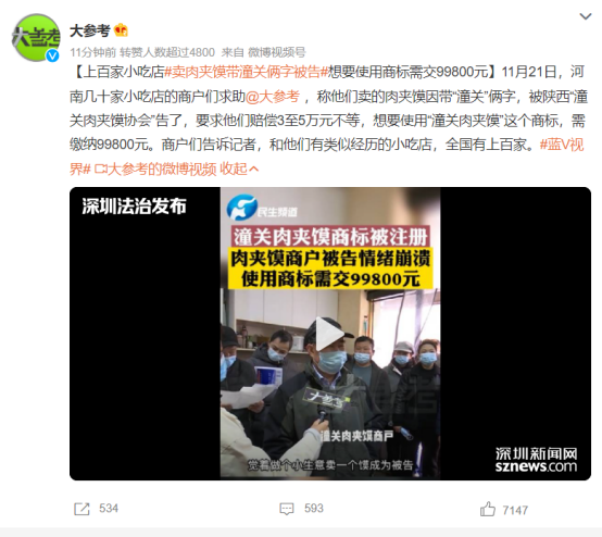 (相關(guān)報道:讓眾多店家崩潰的潼關(guān)肉夾饃商標許可費國家知識產(chǎn)權(quán)局回應了)