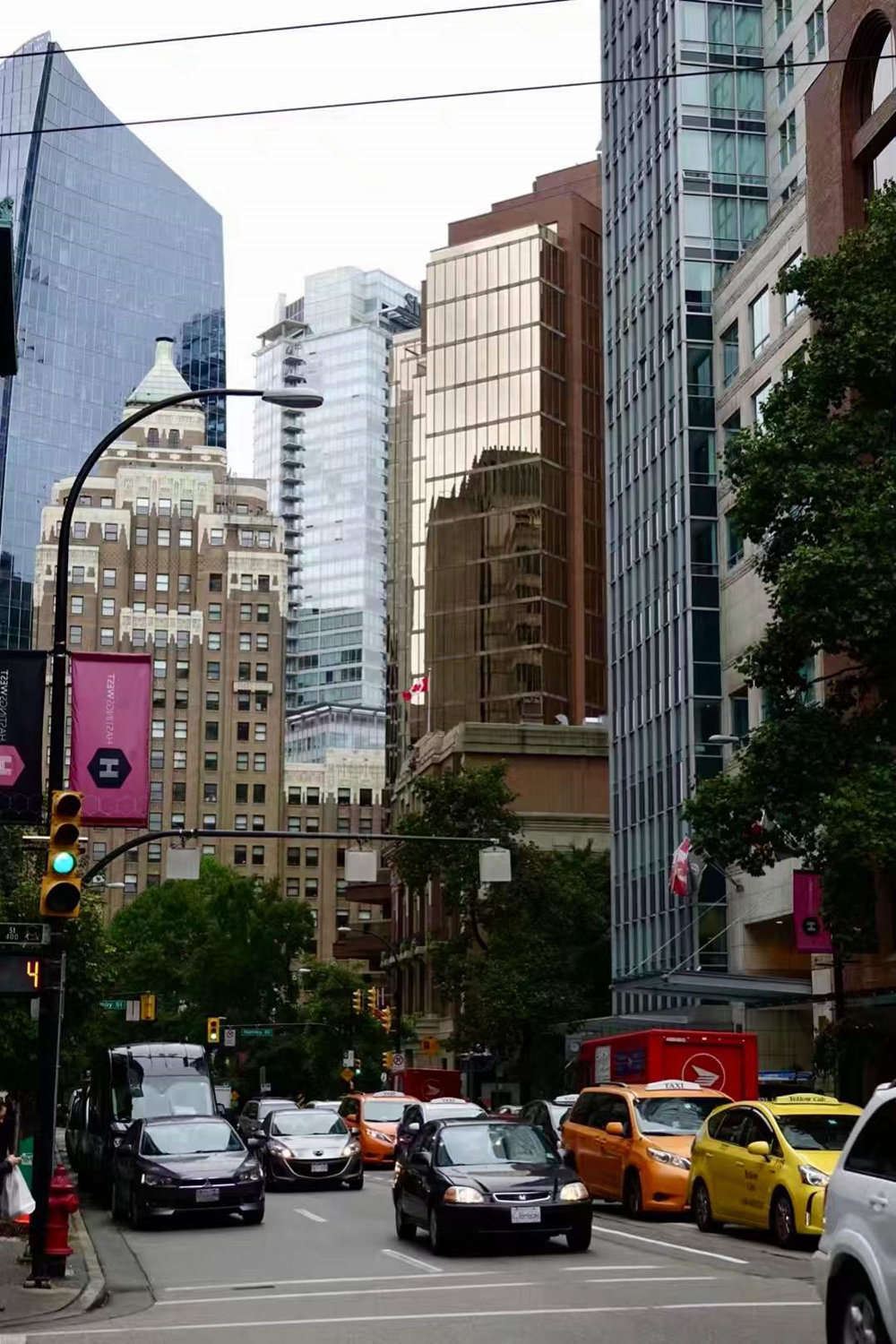 溫哥華市區(qū)依山傍海,林木蒼翠,風(fēng)景秀麗,街道寬闊,高樓林立。大銀行、保險公司、現(xiàn)代化旅館和零售批發(fā)商店比比皆是。李仁奇 攝