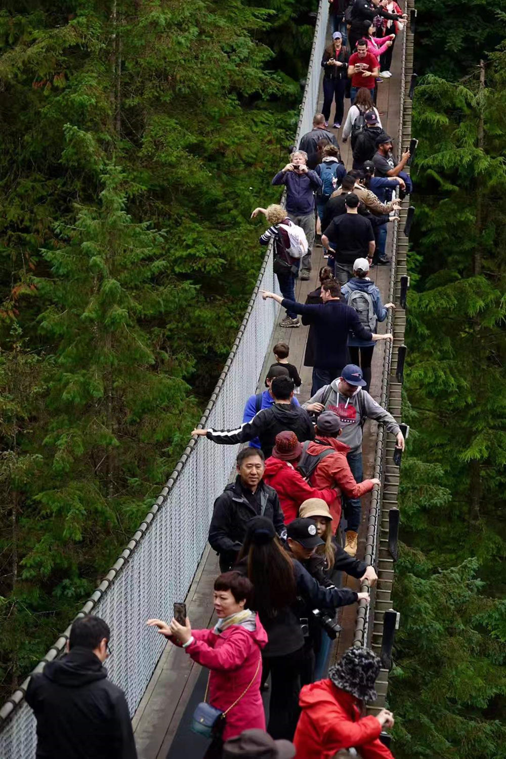 1889年,有人為了保護原始森林不受砍伐購買了這片土地,并修建了卡佩蘭奴吊橋。連他自己都沒有想到這塊地方成了今天來溫哥華旅游的人必來的旅游勝地。李仁奇 攝