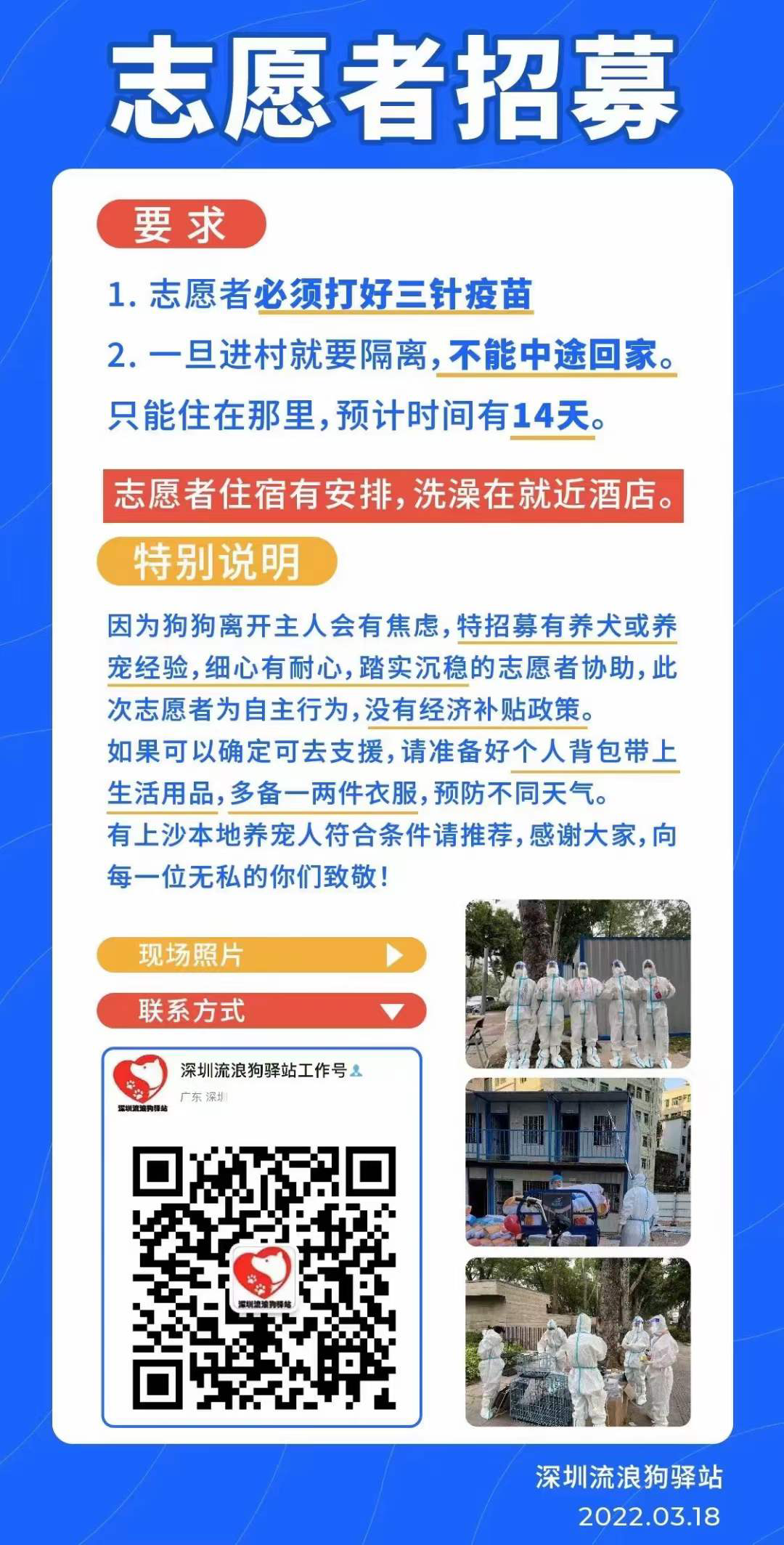 此外,為防止后續(xù)安置寵物數(shù)量增多出現(xiàn)人手不足的情況,深圳動物相關(guān)的公益組織也發(fā)起了志愿者征集,具體要求和聯(lián)系方式見下圖。