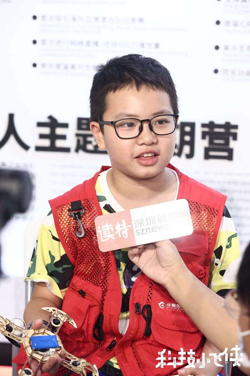 第一個(gè)完成木制無(wú)人機(jī)的小飛俠接受記者采訪。(圖源:深圳新聞網(wǎng))