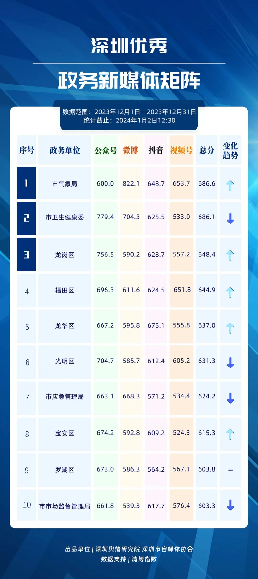 12月深圳優(yōu)秀政務(wù)新媒體矩陣公布!市氣象局、市衛(wèi)生健康委等位列其中