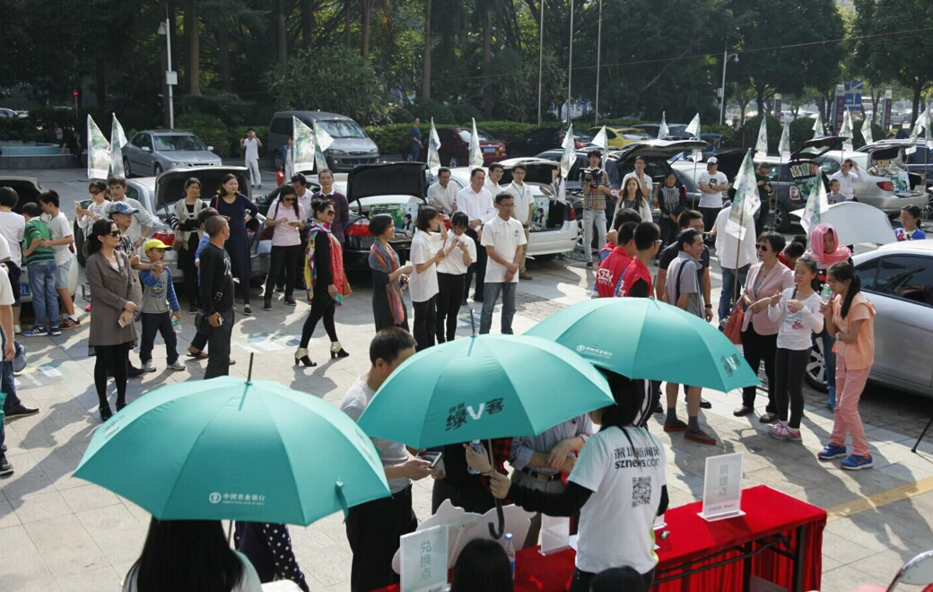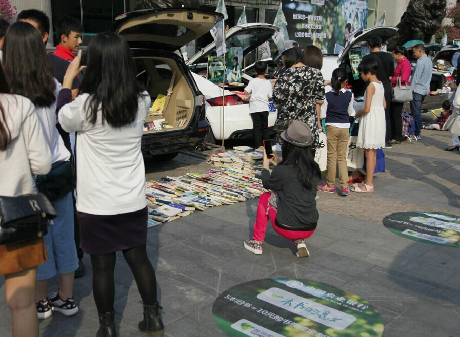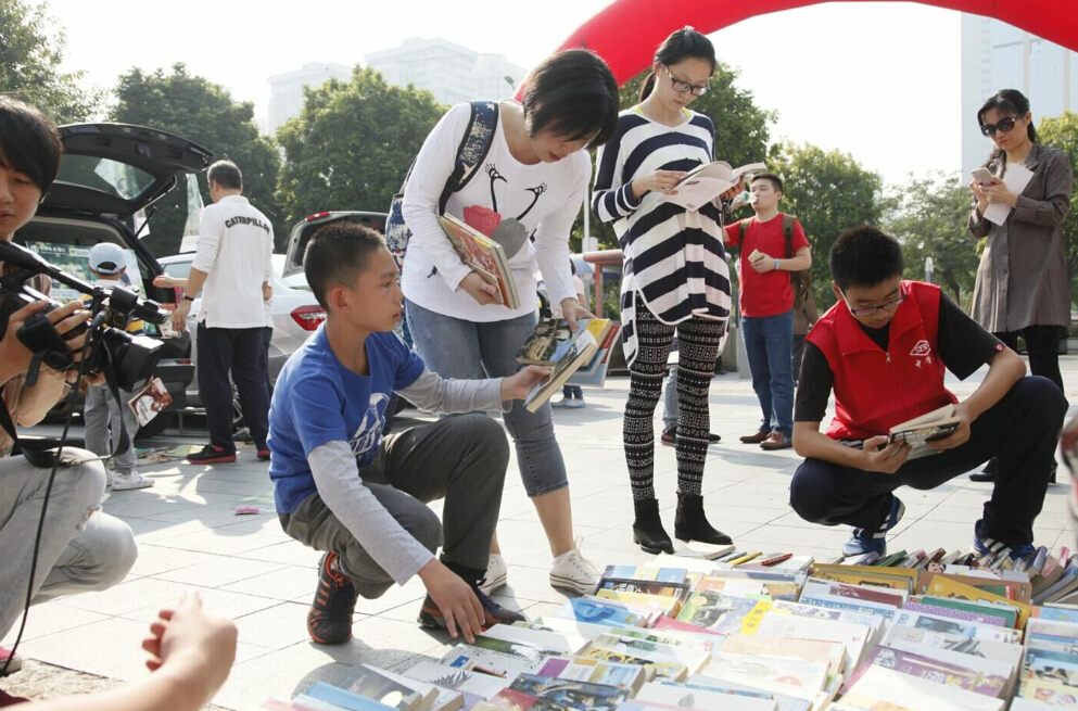 • 深圳市實(shí)驗中學(xué)的車尾箱展位前圍滿了前來換書的人