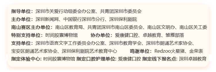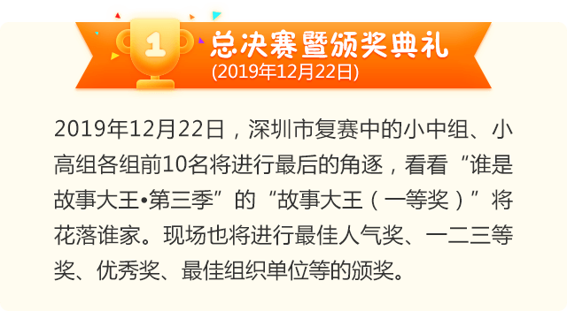 讓閱讀成為動人的風景,讓故事的魅力感動深圳。為助力建設(shè)良好的青少年閱讀環(huán)境,激發(fā)學生閱讀興趣,倡導親子閱讀,共建和諧家庭關(guān)系。2020年,第二十一屆深圳讀書月主題活動“誰是故事大王·第四季”在共青團深圳市委員會、深圳市關(guān)愛行動組委會辦公室的指導下再出發(fā)。更長的活動周期,更豐富的參與形式,更專業(yè)的賽制,“誰是故事大王·第四季”等你來解鎖與挑戰(zhàn)!