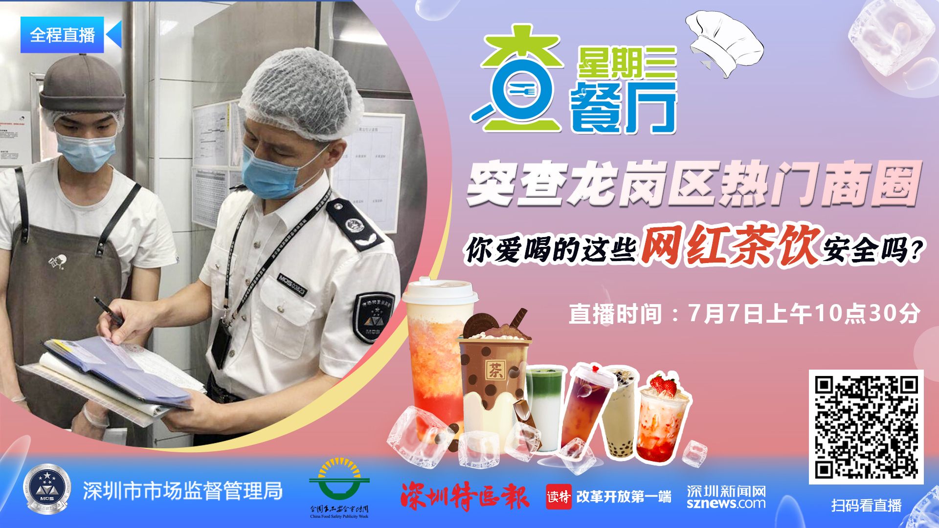“星期三查餐廳,讓深圳人吃的更放心”。8月2日,有媒體曝光“奈雪的茶”存在食品安全隱患,在社會上引起廣泛關注,同時正值濕米粉中毒事故高發(fā)期,為回應民生熱點,科普食安知識,8月4日,“星期三查餐廳”專項執(zhí)法行動突擊檢查位于鹽田區(qū)大梅沙的“奈雪的茶”飲品店和經(jīng)營濕粉類餐飲店--海月居海鮮餐廳。